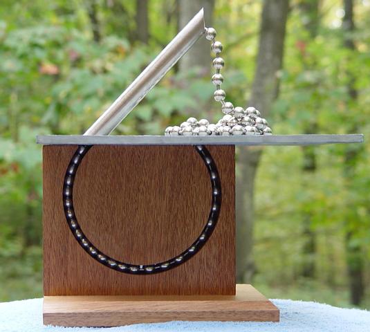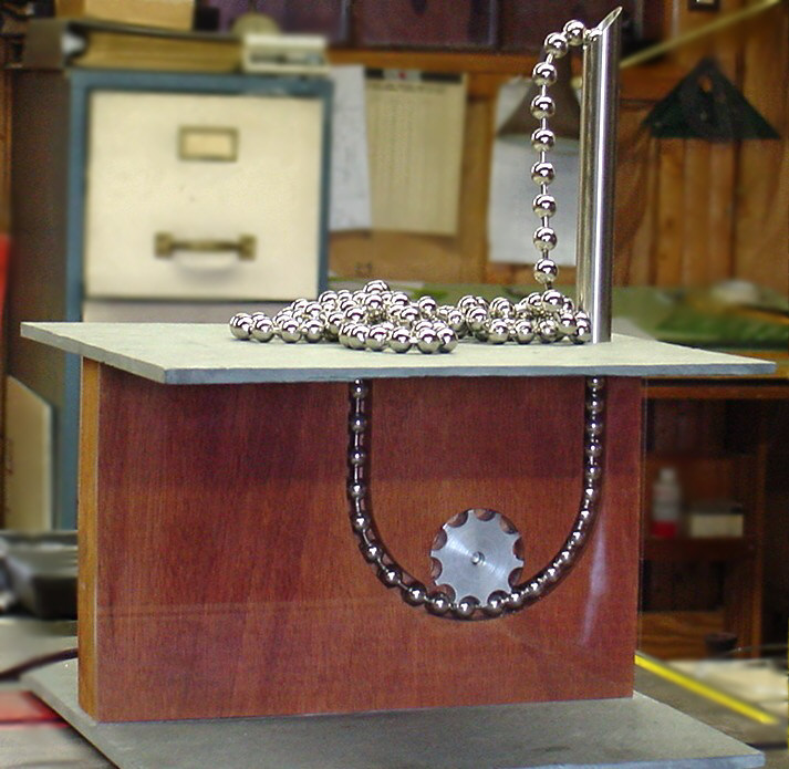 water. The ball chain is "pumped" from a "pool" in the basin up and out a