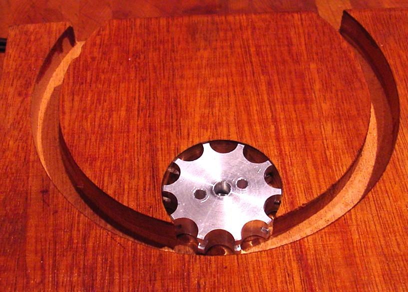 The wood is routed out to allow the chain to travel, and to accept the gear: